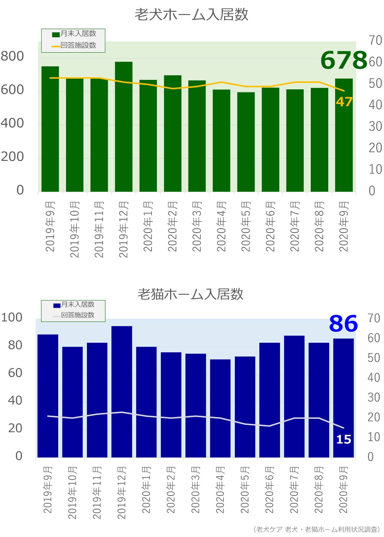 老犬・老猫ホーム入居数調査(2020年9月)