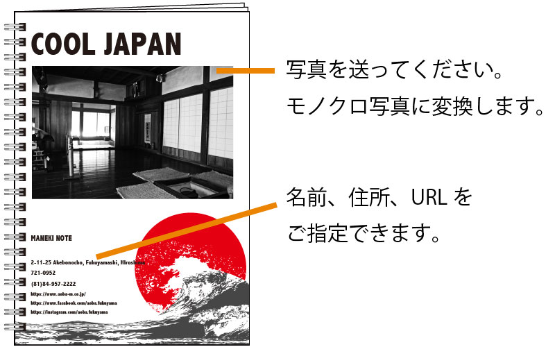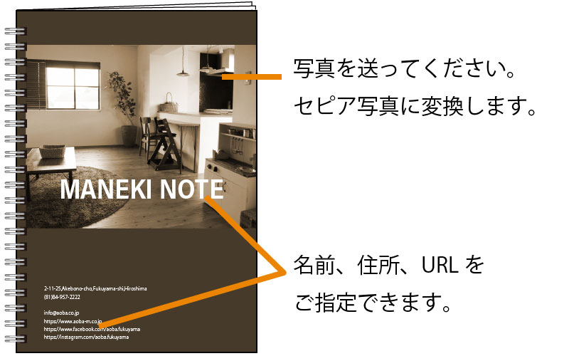 ■表紙をお客様のデザインで作れるオリジナルノート制作サービス「まねきノート」