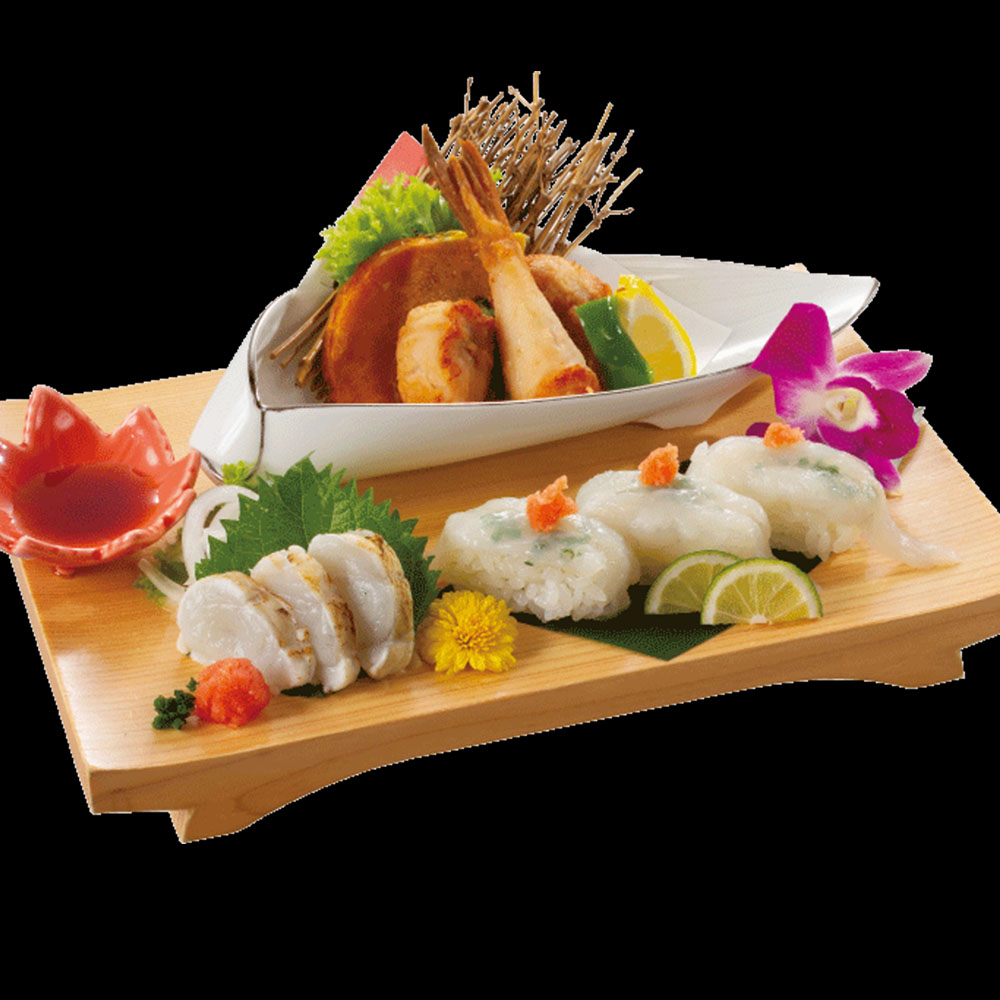 とらふぐを贅沢にも厚切りにカットした「厚切り刺し」、ふぐちり、後雑炊などがセットになったものやそれぞれの単品メニューもご用意。一皿で厚切り刺し、寿司、唐揚げを堪能できる「ふぐづくし」はぜひご賞味いただきたい逸品です。