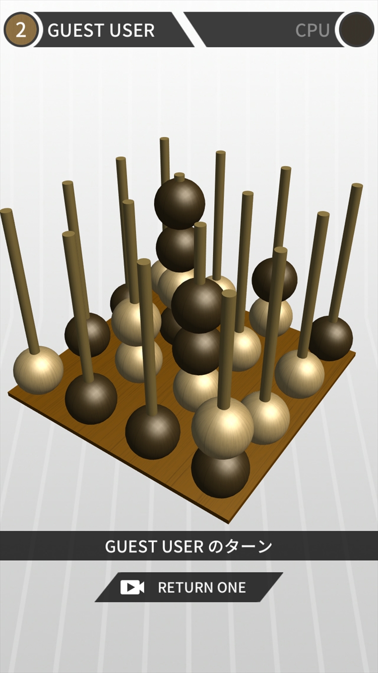 「立体四目並べ」は、計16本のポールに色の違う2種類の球を交互に入れていき、縦横斜めいずれかに自分の色の球を4つ並べることを競うシンプルなルールながら、プレイヤーの戦略も試される内容となっている。