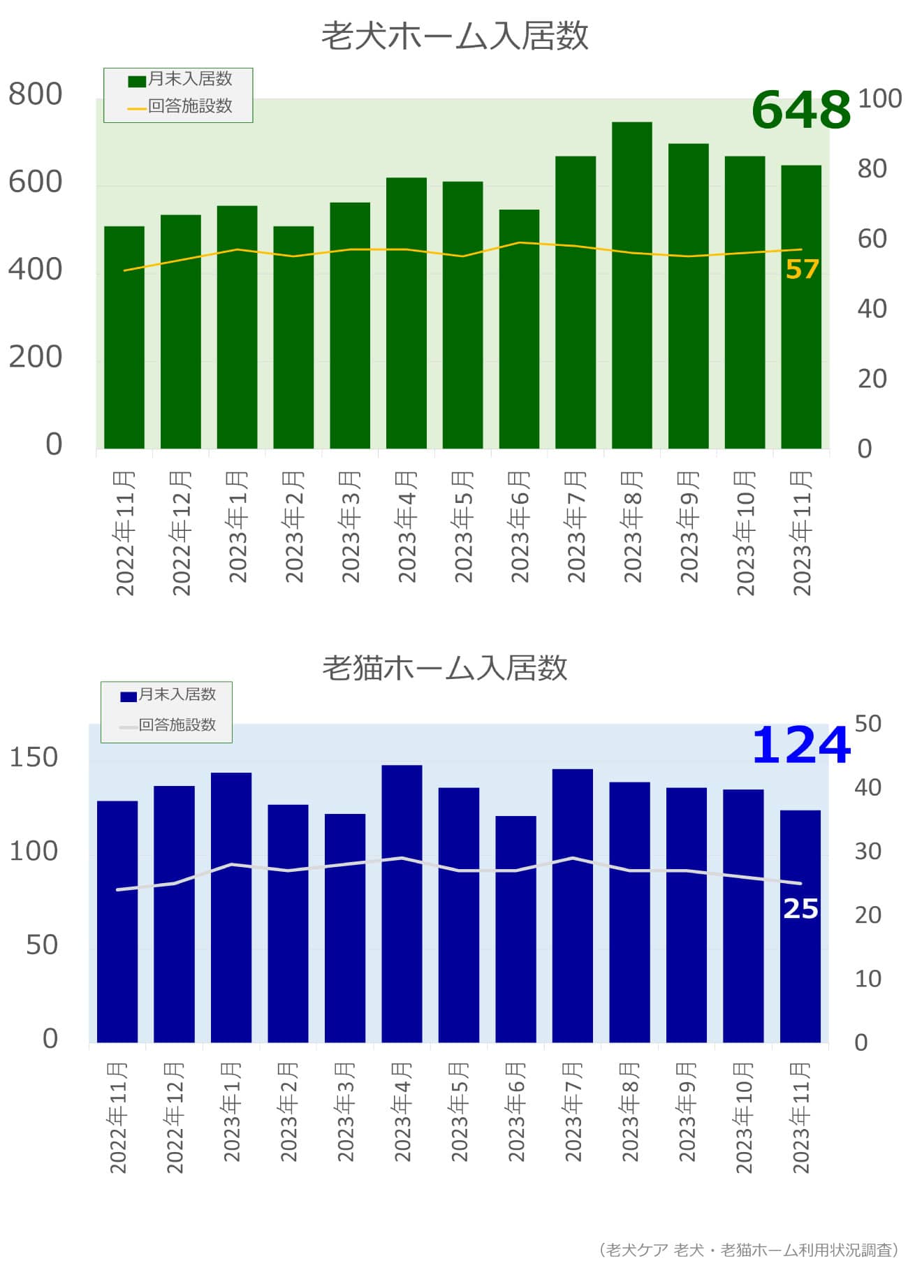 老犬・老猫ホーム入居数調査(2023年11月)