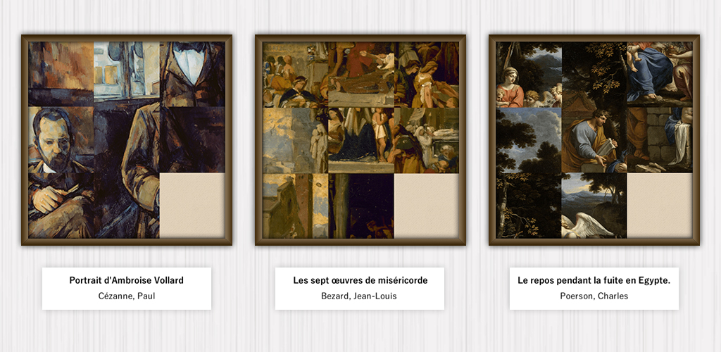 フランス・パリ市内にある14の美術館が所蔵する多数の美術品を所管する公共団体Paris Muséesが2020年1月10日にオープンコンテンツとして公開した10万点以上に及ぶ美術品の中から厳選した名画を利用したスライドパズルゲーム。