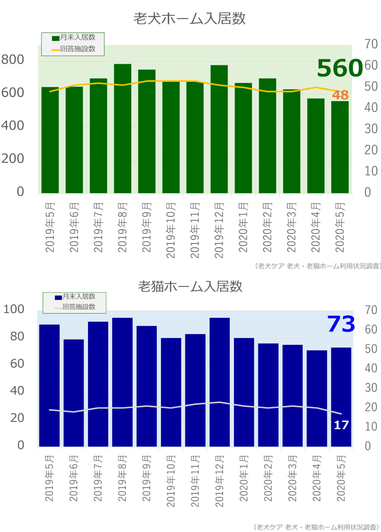 老犬・老猫ホーム入居数調査(2020年5月)