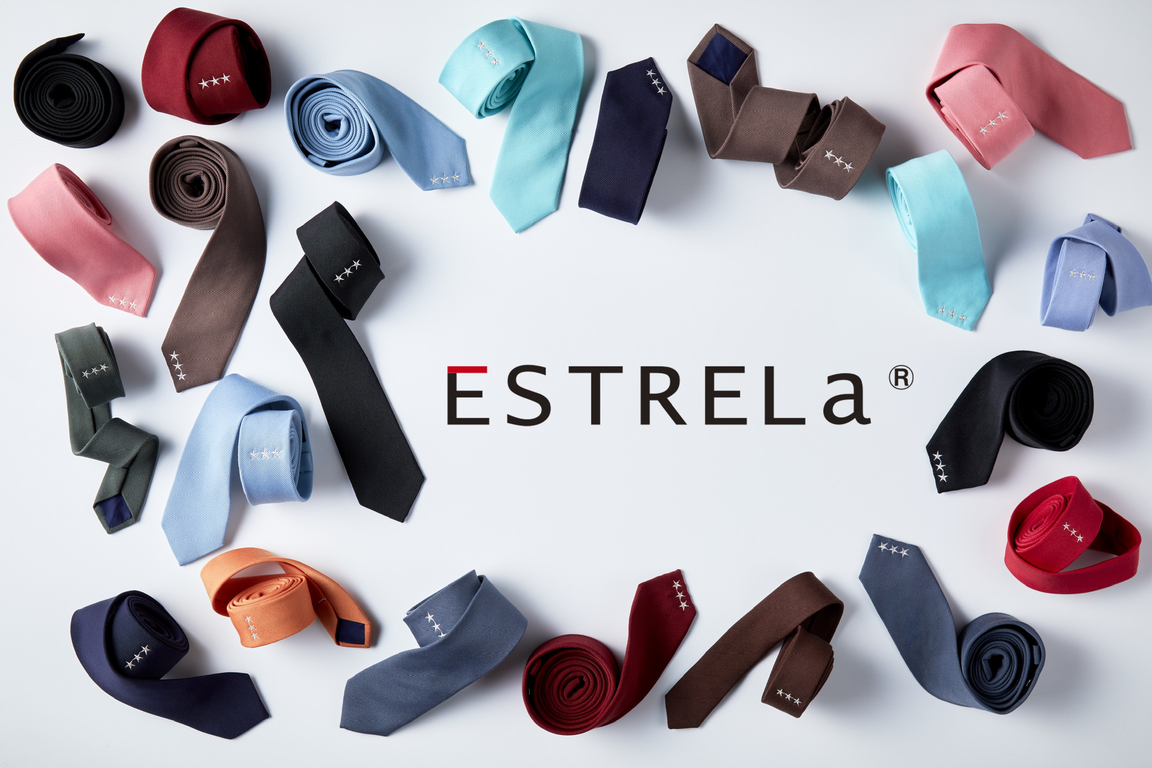 「ESTRELa エストレーラ」というポルトガル語で星という意味をもつ事から、3star(★★★)がロゴであるMADE IN JAPANのネクタイブランドになります。