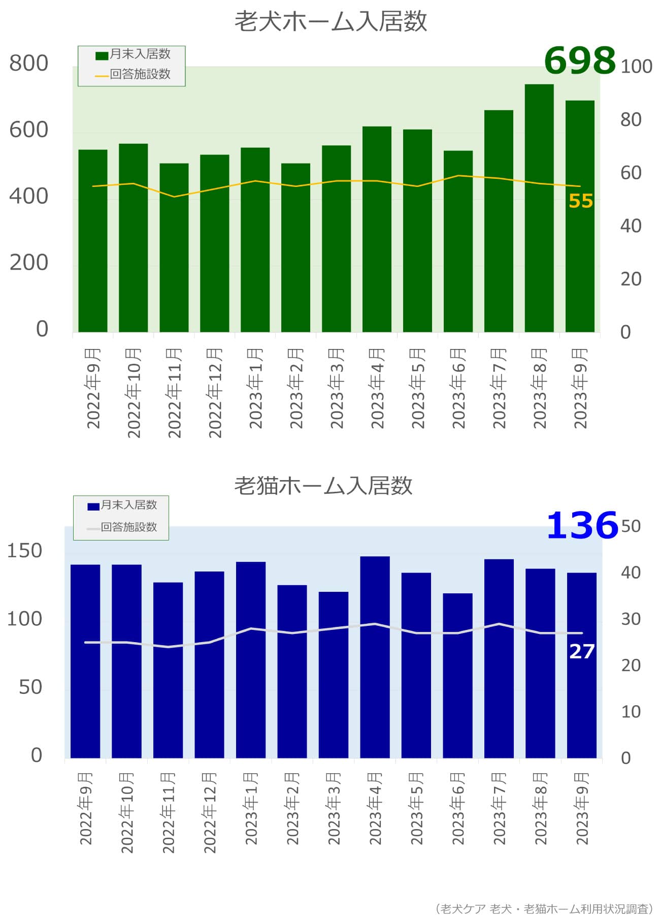 老犬・老猫ホーム入居数調査(2023年9月)