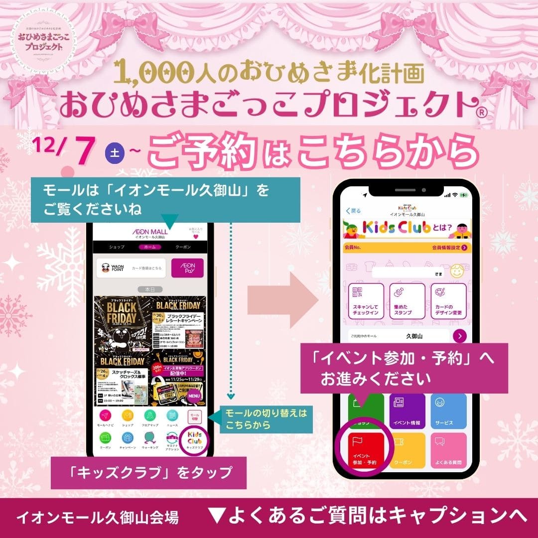 京滋エリアのイオンモール6モールで、おひめさまごっこプロジェクト(R)×イオンモール クリスマス特別プロジェクト 開催決定!