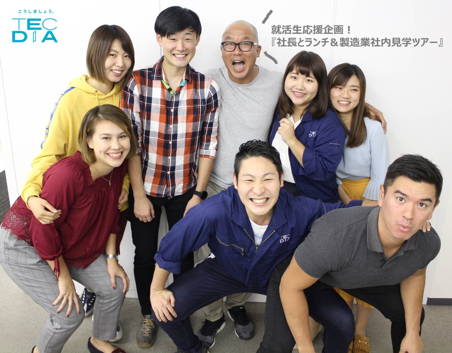 テクダイヤ株式会社(本社: 東京都港区、代表取締役: 小山真吾)は、2018年10月10日より、2019卒・2020卒就職活動生を対象とした、『社長とランチ&製造業見学ツアー』を開催いたします。