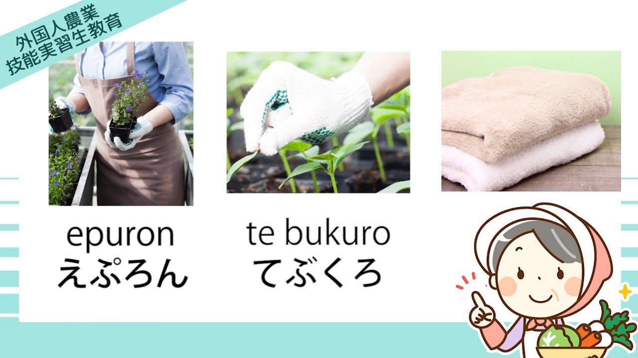 你们今后在日本从事的工作用日语来说是“のうぎょう”。那么,从现在开始,一起来学习农业的常用日语吧!今天,我们来学习“农活中使用的物品”。记住做农活时各种各样的“物品”的说法。另外,工作时会用到的说法也一起记住吧!