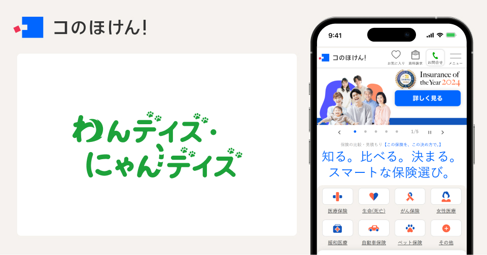「コのほけん!」は、保険選びをオンラインで完結できるデジタル保険代理店です。 保険の見積り・比較・検討・申込まですべてをデジタル化し「自分に合った保険を、自分で選べる世界」を実現します。コのほけん!は直感的に操作しやすく、イラストやインフォグラフィックスを取り入れることで、複雑で分かりづらいと思われがちな保険商品を見やすく、分かりやすく掲載しています。また、口コミや専門家のコメントが充実しており、インターネットがあれば時と場所を選ばず、保険を検討することができます。