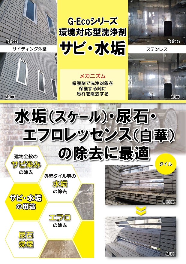 そんな時は、G-Ecoシリーズの環境対応型洗浄剤サビ・水垢をご使用ください。