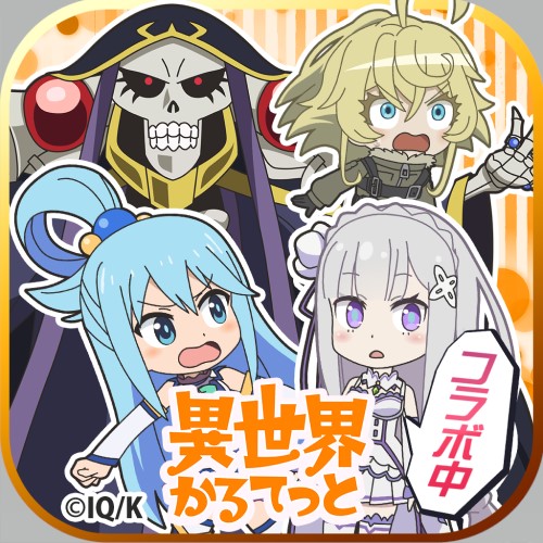 『オーバーロード』『この素晴らしい世界に祝福を!』『Re:ゼロから始める異世界生活』『幼女戦記』の4作品が融合した人気アニメ『異世界かるてっと』から、コラボならではのデザインで主要キャラがアプリ内に登場します。他にもなりきりアバターや限定スタンプなども登場。アニメの世界観をそのままに、可愛いぷちワールドの世界を楽しんで下さい。