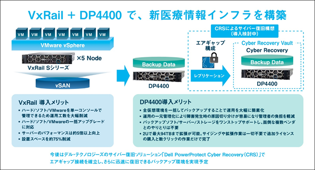 ITインフラのソリューション・ディストリビューターである株式会社ネットワールド(本社:東京都千代田区、代表取締役社長 森田 晶一)は、社会医療法人 三愛会 大分三愛メディカルセンター(所在地:大分県大分市)の医療情報インフラ再構築プロジェクトにおいて、ネットワールドが提供するデル・テクノロジーズ製ハイパーコンバージド・インフラストラクチャー製品「Dell VxRail Sシリーズ(以下、VxRail)」、並びにデータ保護コンバージドアプライアンス「Dell PowerProtect DP4400(以下、DP4400)」が採用され、本格稼働開始したことを発表します。