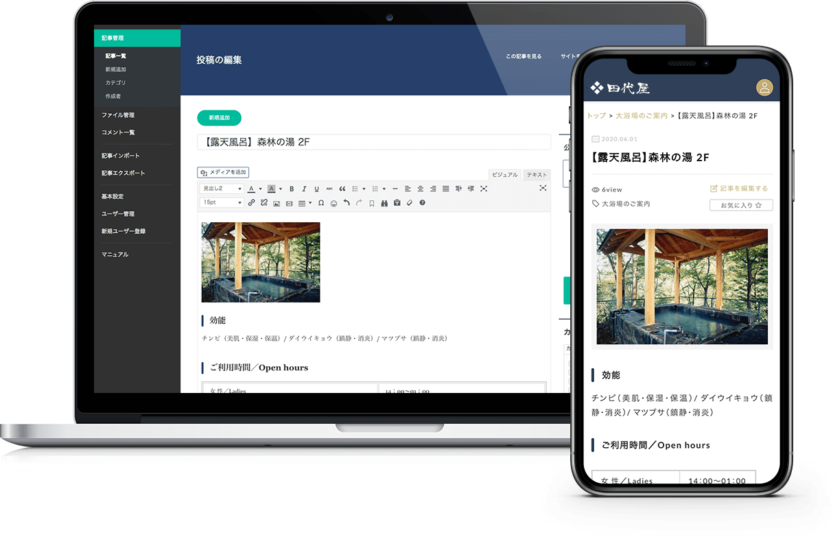 ・記事ごとに公開・非公開の設定ができるので旅館やホテルの業務マニュアルとしても利用可能です。