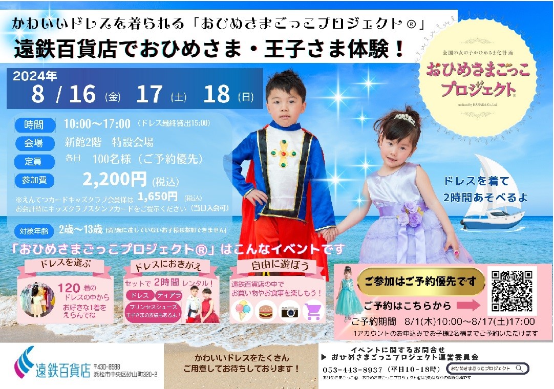 【予約優先】8/16,17,18静岡県浜松市 遠鉄百貨店 おひめさまごっこプロジェクトⓇ