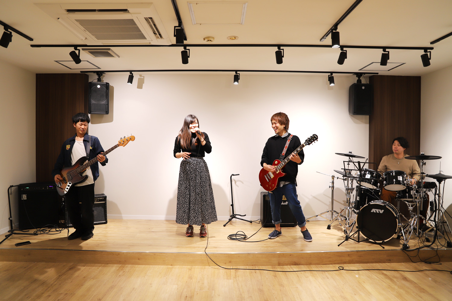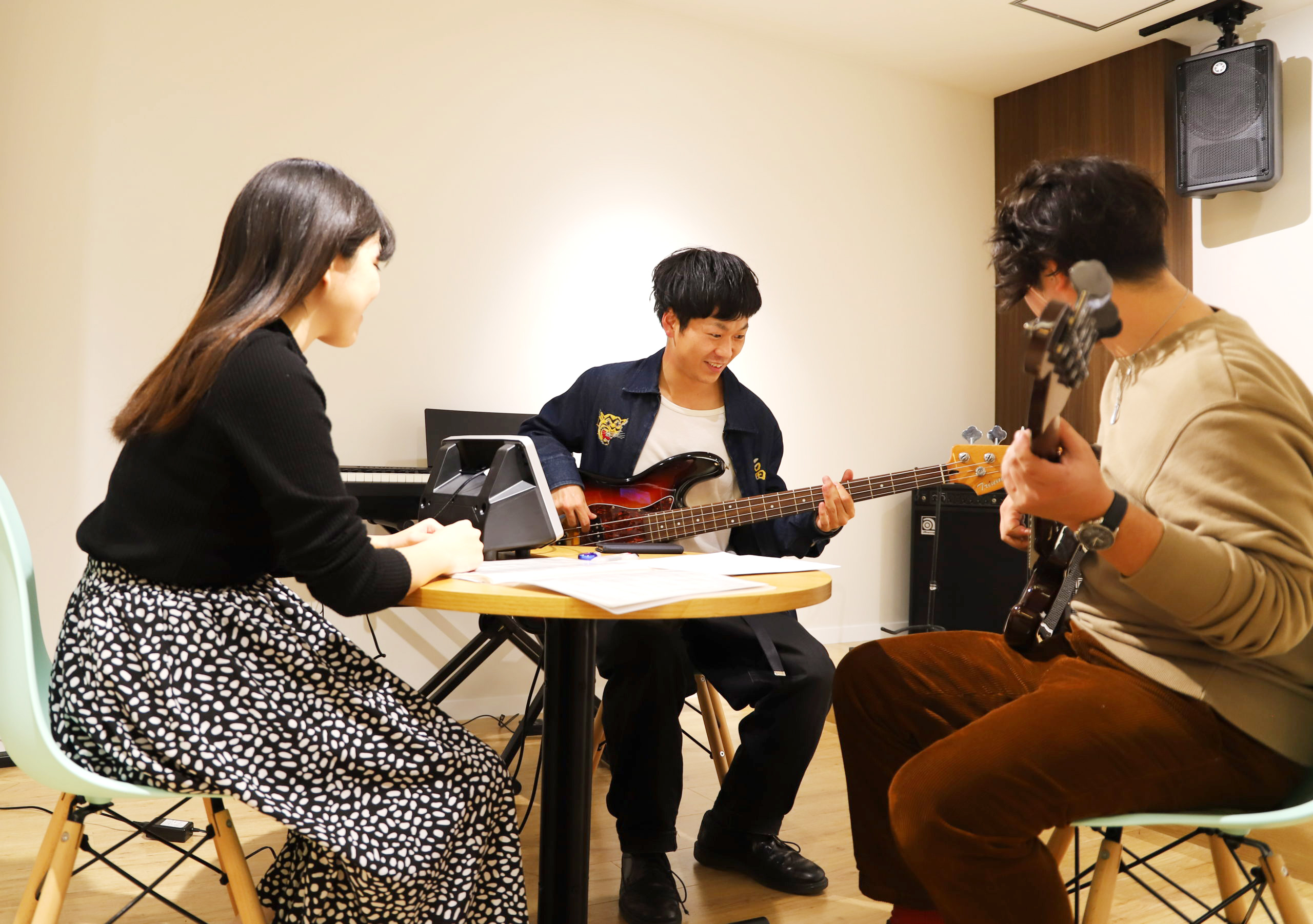 スタッフが一人一人にレッスンやアドバイス、どんな質問や相談にも親身になってお受けします。レッスンは日によってパートチェンジも出来るので「普段はギターだけど今日はドラムに挑戦してみよう」ということもできます。