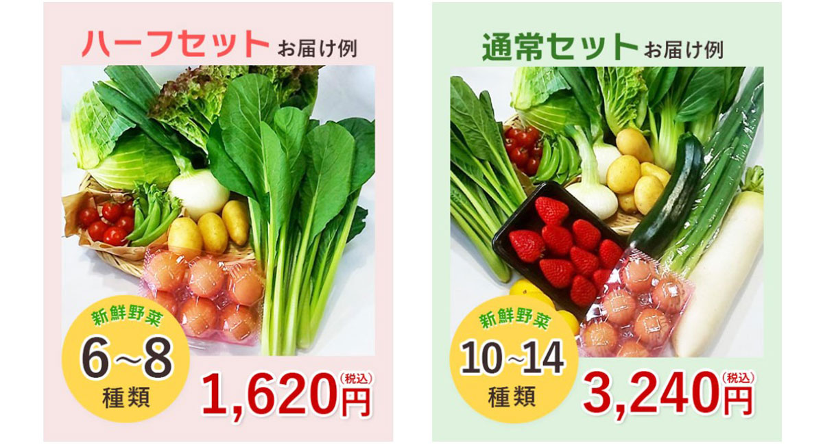ご家族をお持ちの方だけでなく、少人数世帯の方にも、使い勝手のよい商品を提供したい…。そんな思いから、ジモベジでは、通常の野菜セットより少量かつ安価で購入できる「ジモベジ野菜ハーフセット」の発売を開始しました。