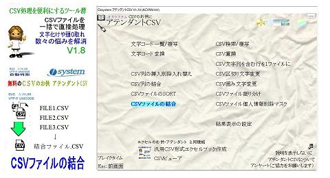 CSV処理をより便利にする無料ツール集「CSVのお供 アテンダントCSV」V1.8にバージョンアップ