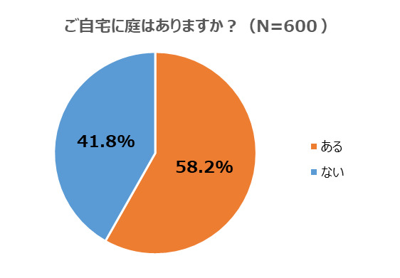 リビンマッチの利用者に「自宅に庭があるか」を聞いたところ、『ある』(58.2%)、『ない』(41.8%)となりました。