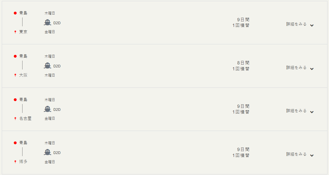 このたびは、輸送コストへのご要望にお応えできるよう、青島にてD2Dもサービスのご提供を始めます。
