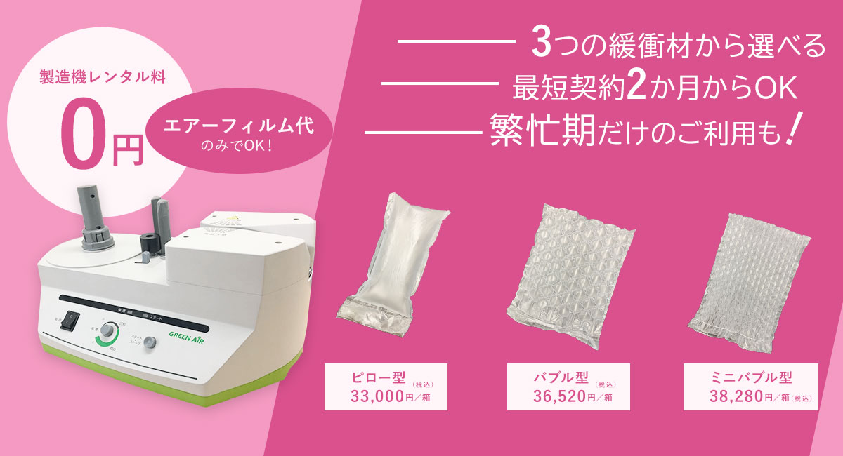 エアー緩衝材フィルムを定期的にご購入いただくことでレンタルが可能です。