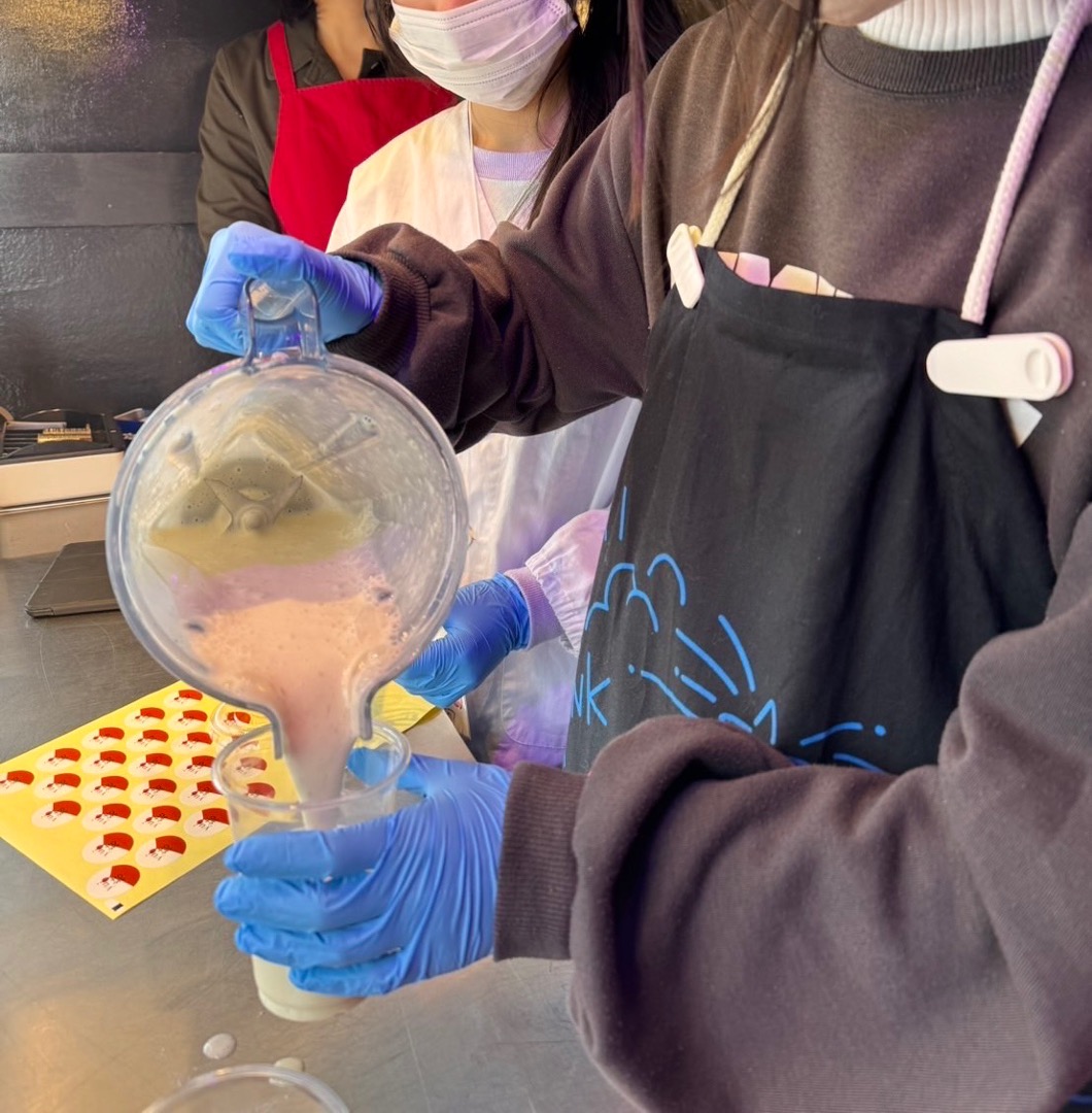 小学生たちがアイデアを出し合い、キッチンカー「結-yui-」とともに開発した特別メニューのメロンを使った大阪名物ミックスジュースを販売しました。