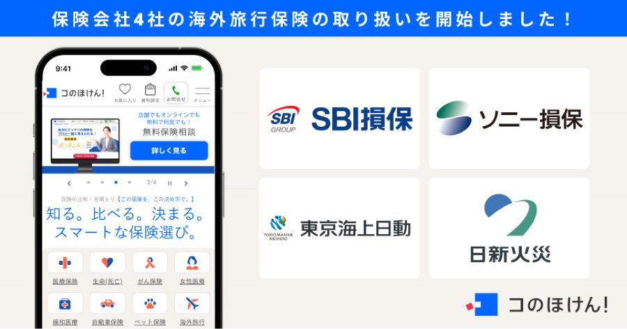 海外旅行保険の取り扱いを開始!| 保険の一括比較・見積もりサイト「コのほけん!」