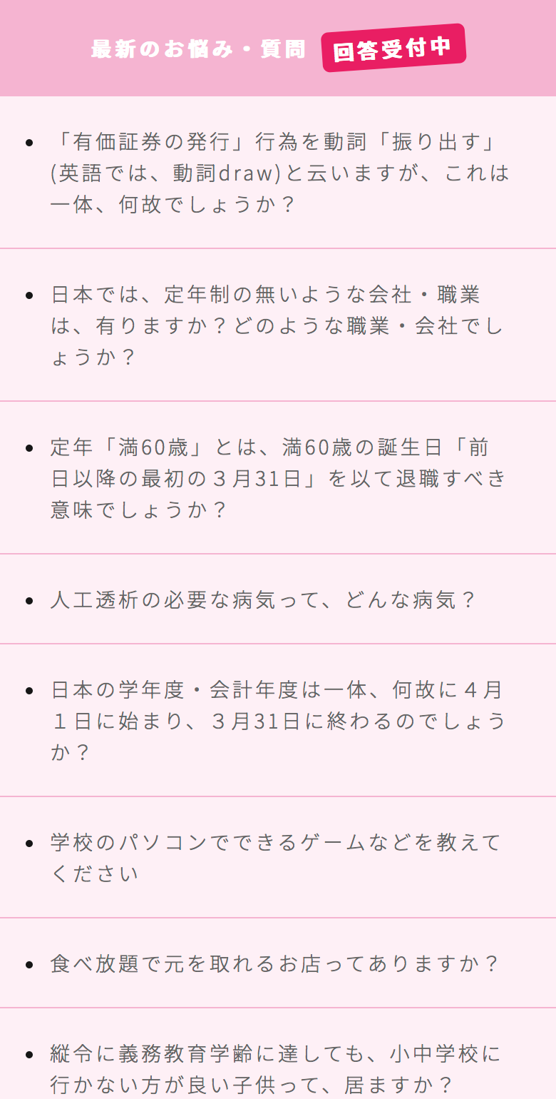 お悩みや質問を気軽に投稿することができるよう無記名としています。