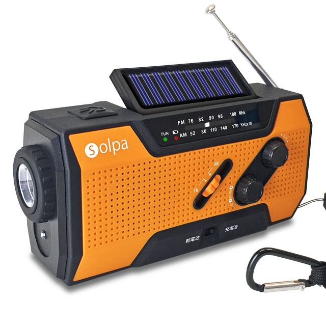 株式会社クマザキエイムは、自社ブランド「Solpa」の新商品として「手回し/ソーラー蓄電ラジオ Chardio(チャージオ)|SL-090」を開発し、7月3日(火)より、メーカー希望小売価格:6,000円(税別)にて販売しております。