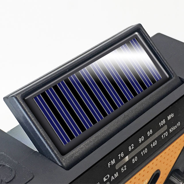 コンパクトな本体に蓄えた電力で、スマートフォンの充電やラジオ放送 の受信、懐中電灯・読書灯と、「もしも」に頼れる「手回し/ソーラー蓄電ラジオ」です。