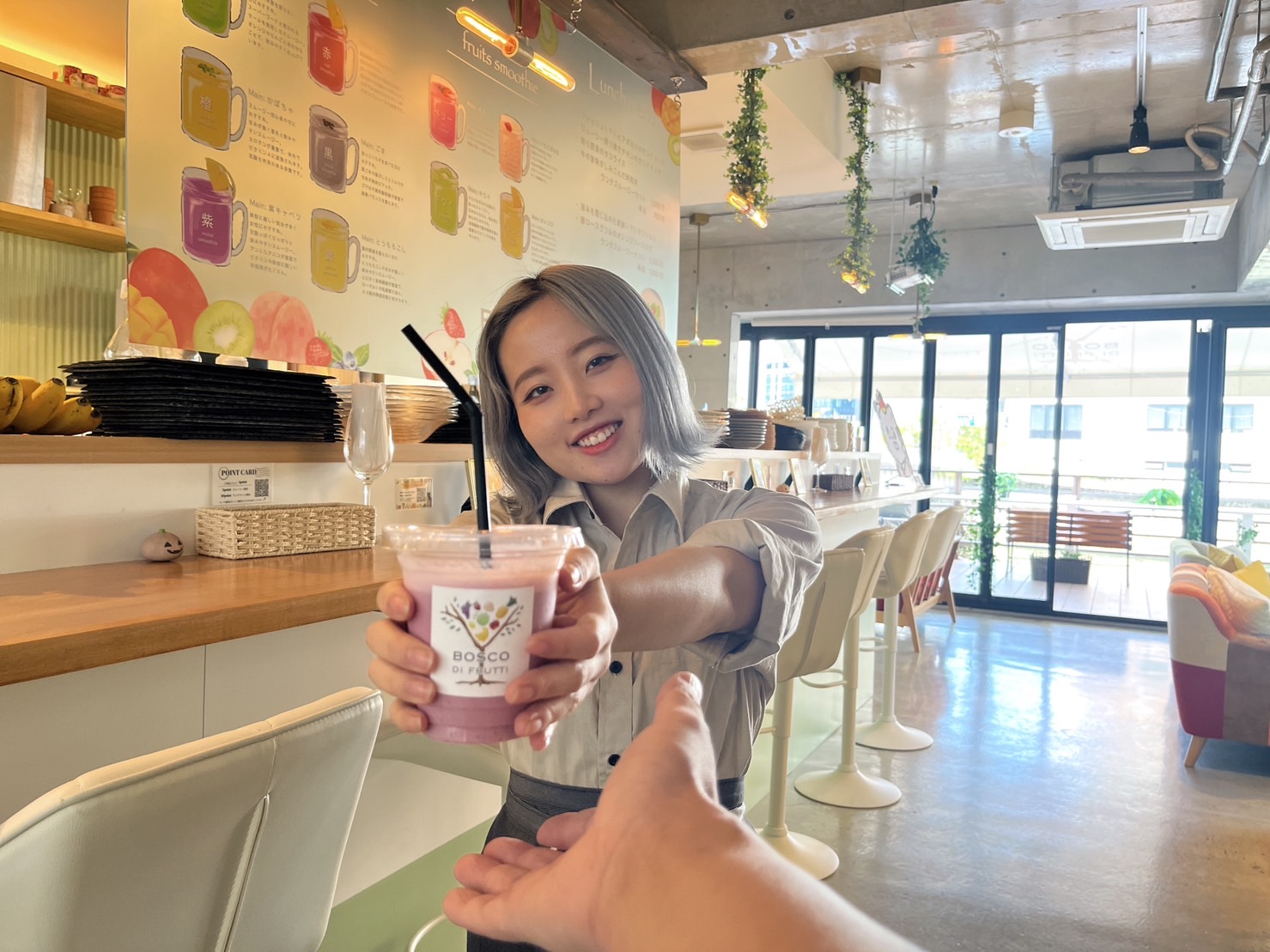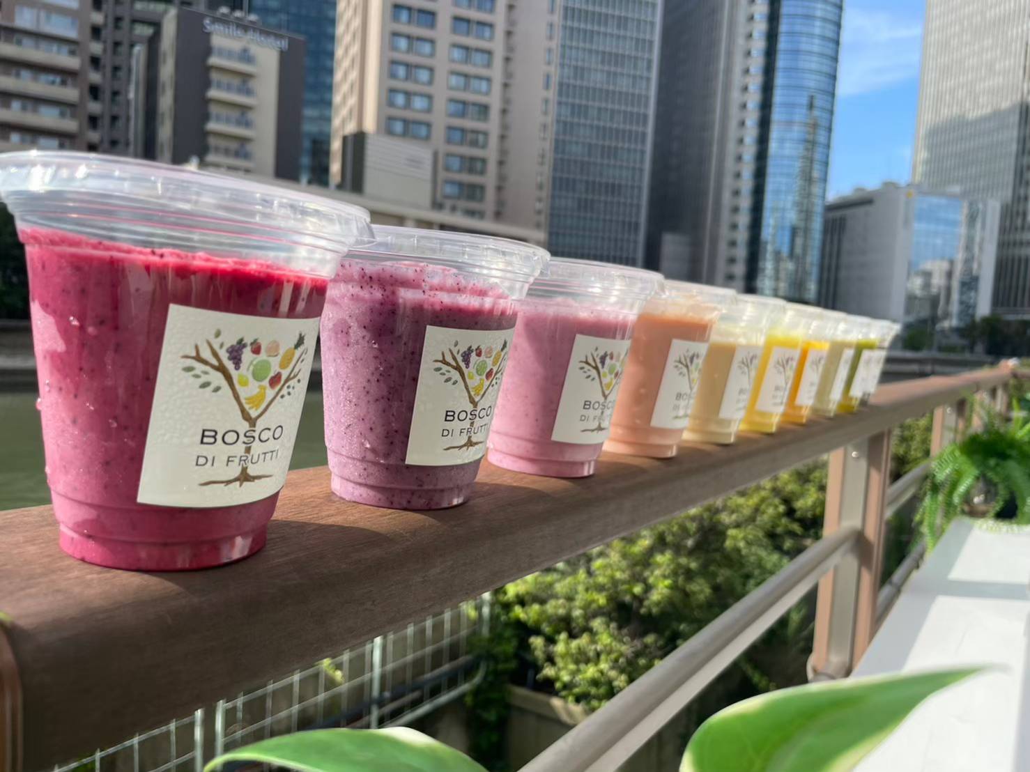 大阪市立科学館や大阪中之島美術館より徒歩5分。フルーツカフェ&ダイニングBOSCO di fruttiにて、看板メニューのスムージー(税込500円)を合計500杯まで、無料でご提供いたします。
