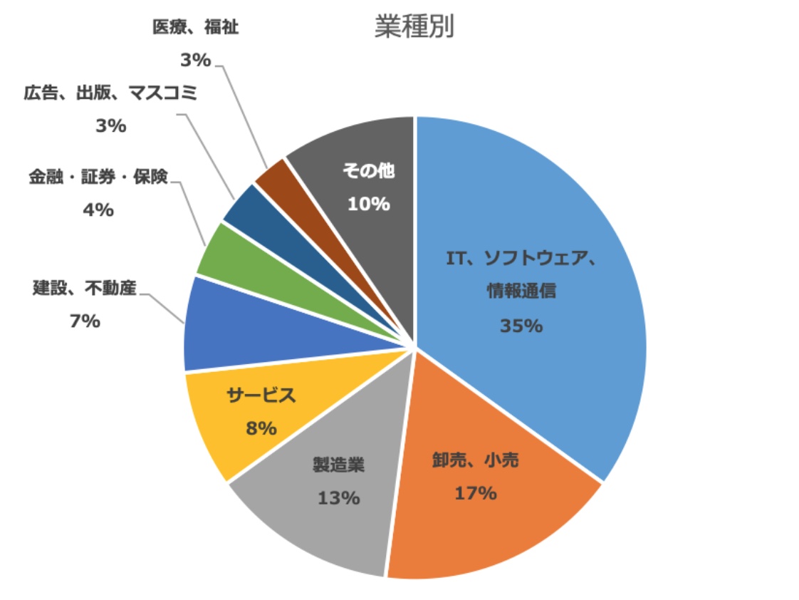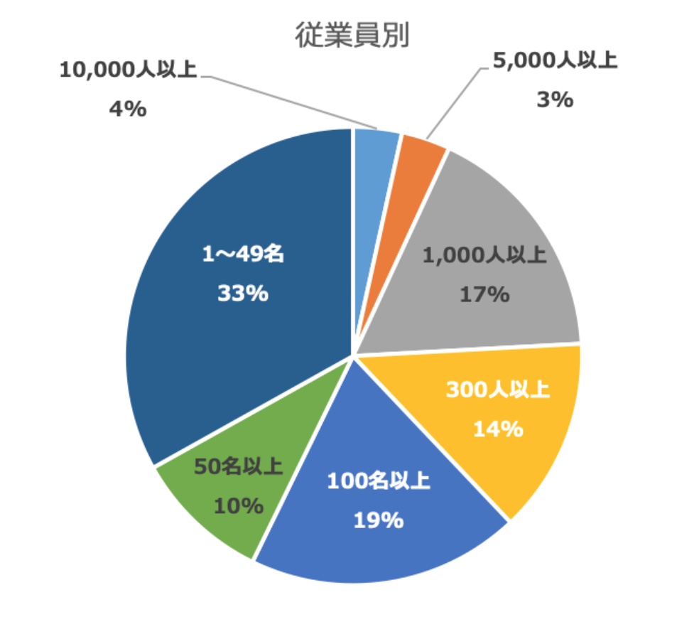 導入企業の従業員規模では10,000名以上の大企業も含まれますが、50名以下の組織がもっと多く、従業員の多少に関わらず、従業員満足の課題解決を目的に導入に至っていることが見受けられます。