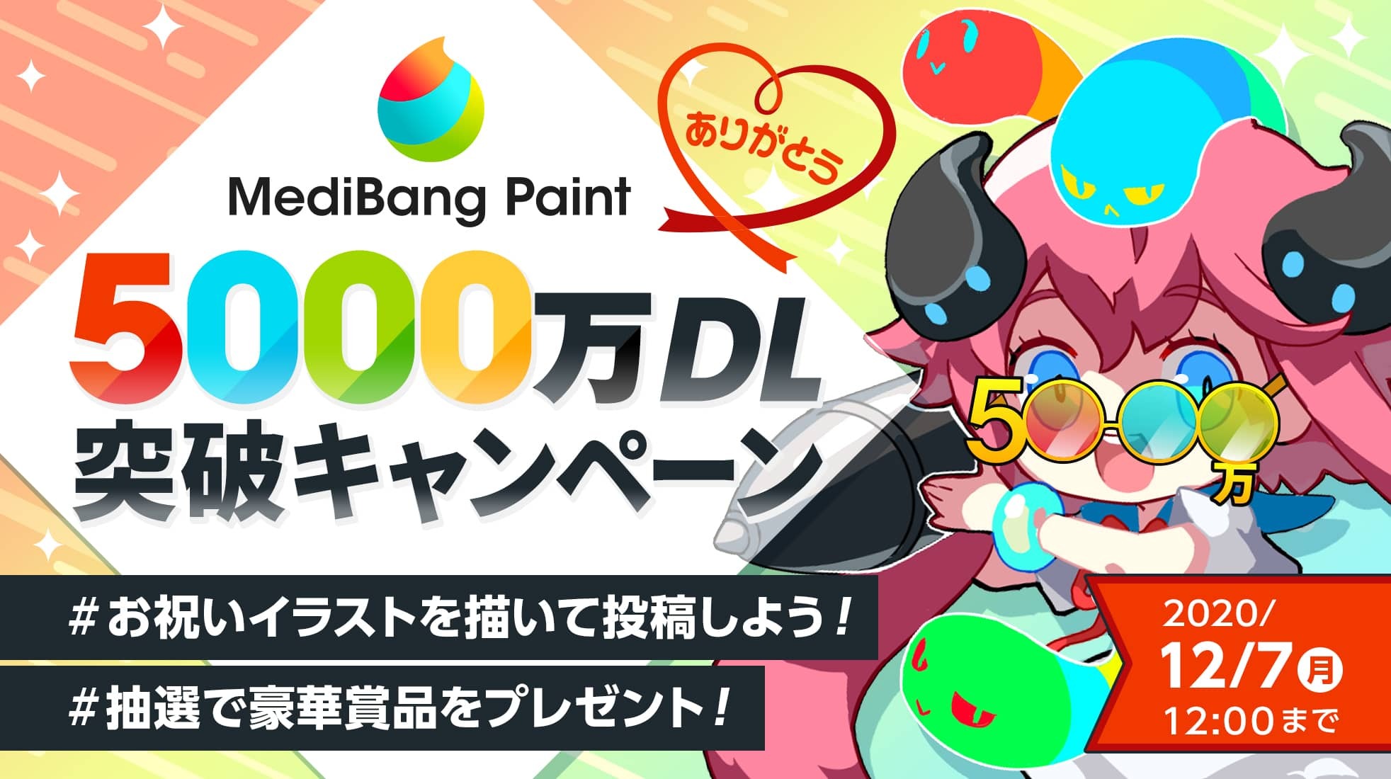 なお、今回は5000万ダウンロードという大きな節目を記念して、「メディバンペイント5000万DL突破キャンペーン」を開催いたします。