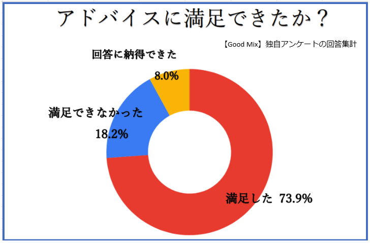 ・明確な答えを出してくれたため、満足することができた。(20代女性)