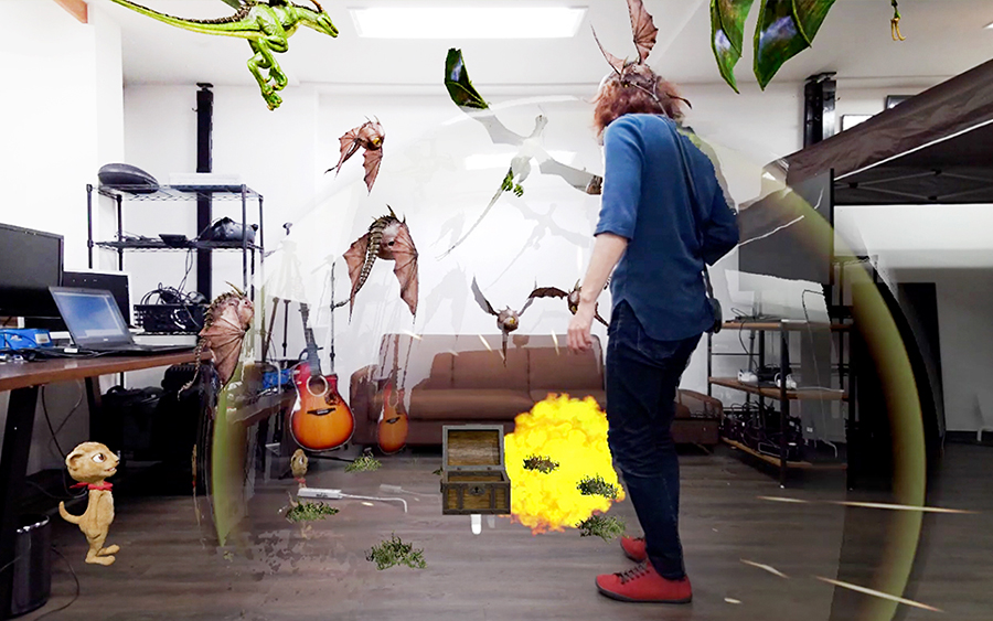 ハンドトラッキングによって手から炎の魔法を放つことで、よりリアルなファンタジー体験をお楽しみいただけます。