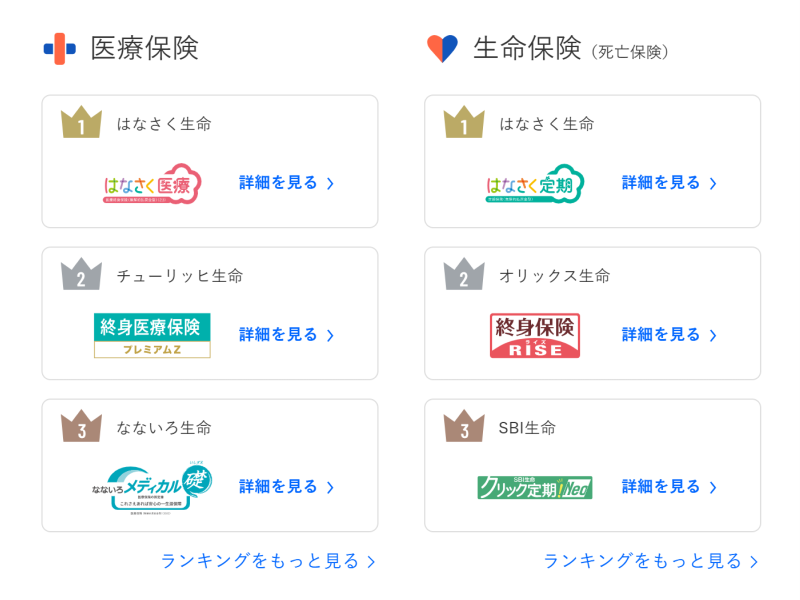 生命保険(死亡保険)ランキング