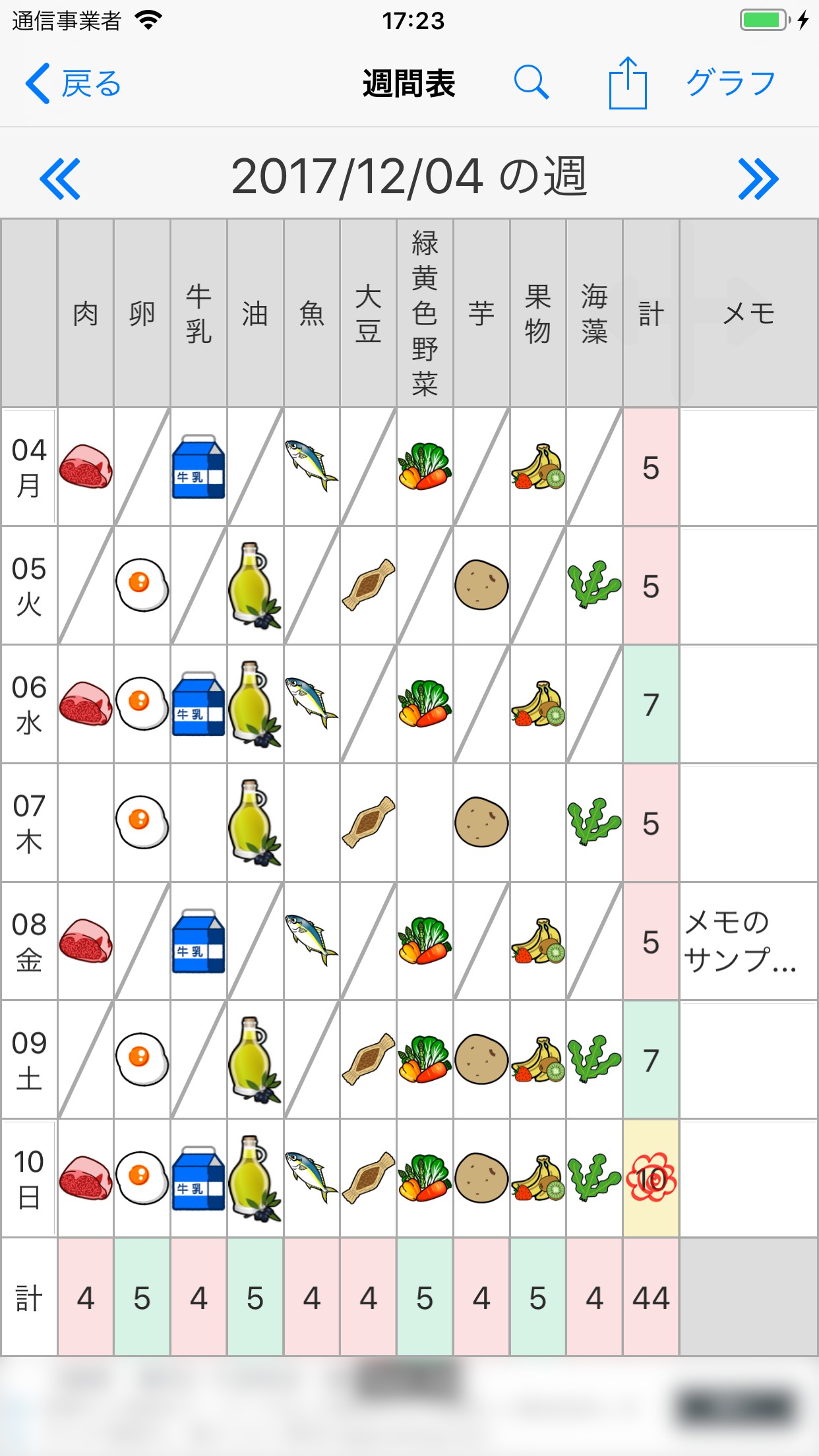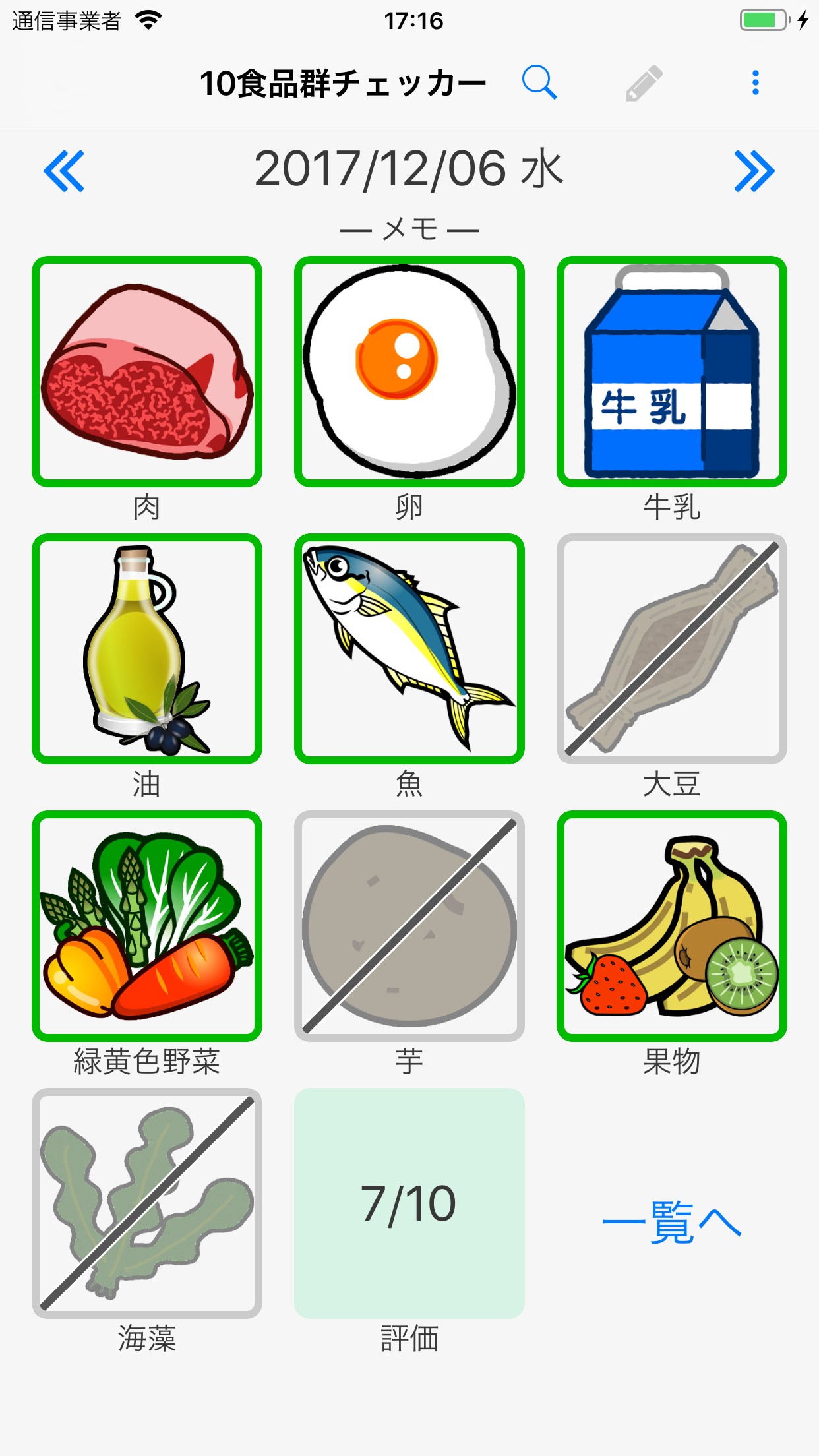 スマホアプリ「10食品群チェッカー」食べなかった印を追加