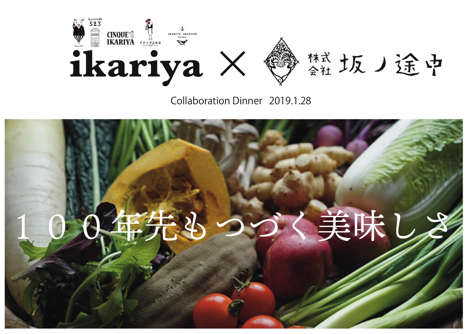 株式会社ルディコ(滋賀県/代表 鳥井和機)が運営するフレンチレストラン「ikariya523」は、2019年1月28日(月)、環境負荷の小さい農法で育てられた野菜を扱う、株式会社坂ノ途中(京都市/代表 小野邦彦)の野菜を使用した「100年先も続く美味しさ」をテーマにしたコースを1日限定で提供いたします。