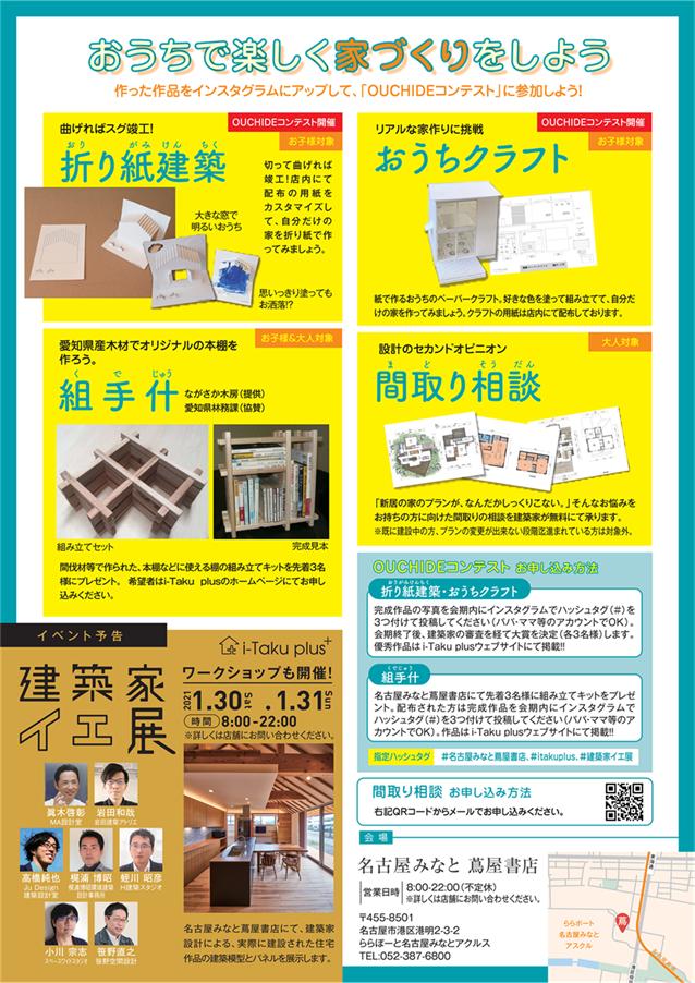 指定ハッシュタグ:#名古屋みなと蔦屋書店、#itakuplus、#建築家イエ展