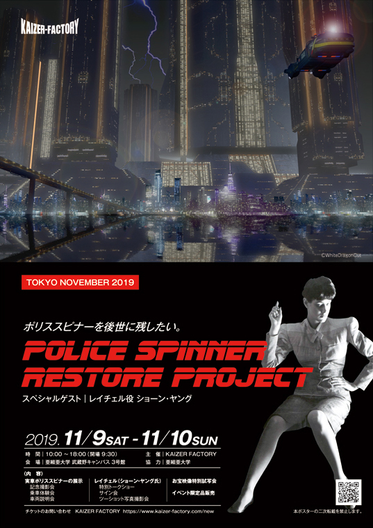 そこで今回、歴史的遺産でもあるこのスピナーを一人でも多くのファンに見てもらうため、「お披露目イベント」の開催が決定 した !ゲストには、ブレードランナーでヒロイン、レイチェルを演じたショーン・ヤング の “参戦”が 急遽 決定 スピナーのお披露目に“華”を添えてくれる。 実は、今回が初来日のため、どんな撮影秘話が飛び出すのか、色々緊張が走る! なお、イベント自体の資金はクラウドファンディングでまかなうため、 イベント参加 を 希望 する 場合はクラウドファンディングに申し込む必要がある