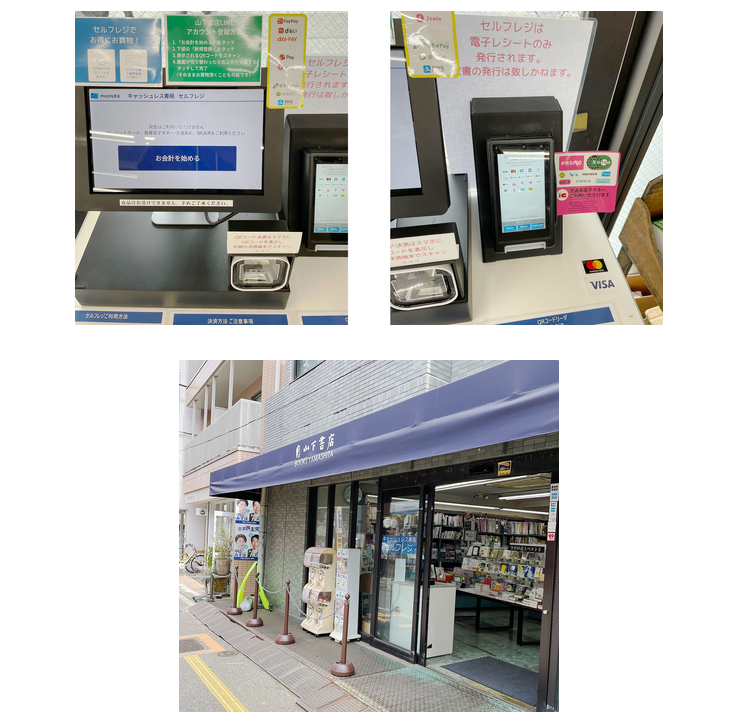 Nebraskaの「MUJIN書店」は、トーハングループの山下書店世田谷店において、有人・無人をハイブリッドに組み合わせた24時間営業モデルの実証実験を2023年3月20日より開始しています。従来は営業時間外だった夜間・早朝を無人営業化することで、書店ユーザーの利便性を高め、売上拡大を目指すものです。無人営業を前提とした会計システムは、完全セルフかつキャッシュレスでの運用となり、上位機器側のPOSが求めるすべての機能を満たした決済端末として、「salo-01」を採用していただきました。同店では、クレジットカード決済、電子マネー決済、コード決済に対応しており、無人営業にしたことで売上は前年比2桁増の伸び率で推移しているとのことです。実証実験で得られた結果をもとに、他書店への横展開も視野に入れており、減少傾向にある小型書店に付加価値を与えるソリューションとして期待が寄せられています。また、「MUJIN書店」は、LINEとQRコードで認証する入店システムで無人時間帯の入店管理を行っており、入店管理も含めた無人店舗ソリューションとしては、「salo-01」を採用した初の事例となります。