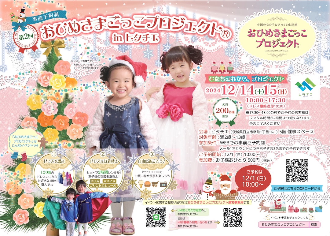 昨年好評につき第2回目の開催!日立市「ひたちこれから。プロジェクト」と「おひめさまごっこプロジェクト(R)」がコラボレーションしたキラキラクリスマスイベントをご案内いたします。