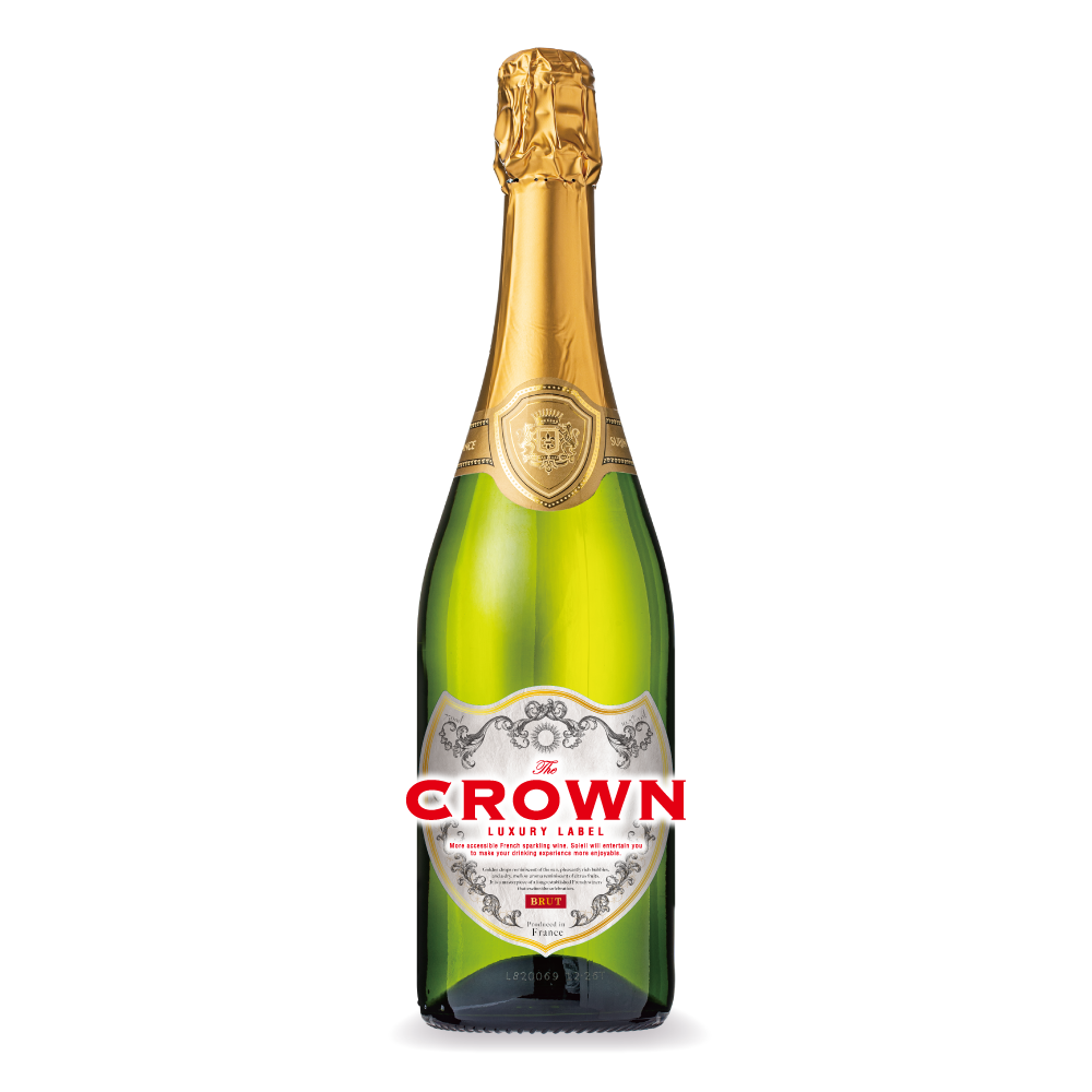変形型のCROWNラベルに、飲食店様の屋号やロゴが金箔で印字され、スパークリングワインに貼った状態で飲食店様へお届け出来ます。最小ロット12本からご注文いただける本商品は、飲食店様の本来もつポテンシャルを最大限引き出すことのできる高級仕様アイテムであることをお知らせいたします。