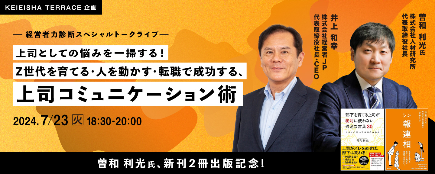 【KEIEISHA TERRACE企画】経営者力診断スペシャルトークライブ 上司としての悩みを一掃する! Z世代を育てる・人を動かす・転職で成功する 上司コミュニケーション術