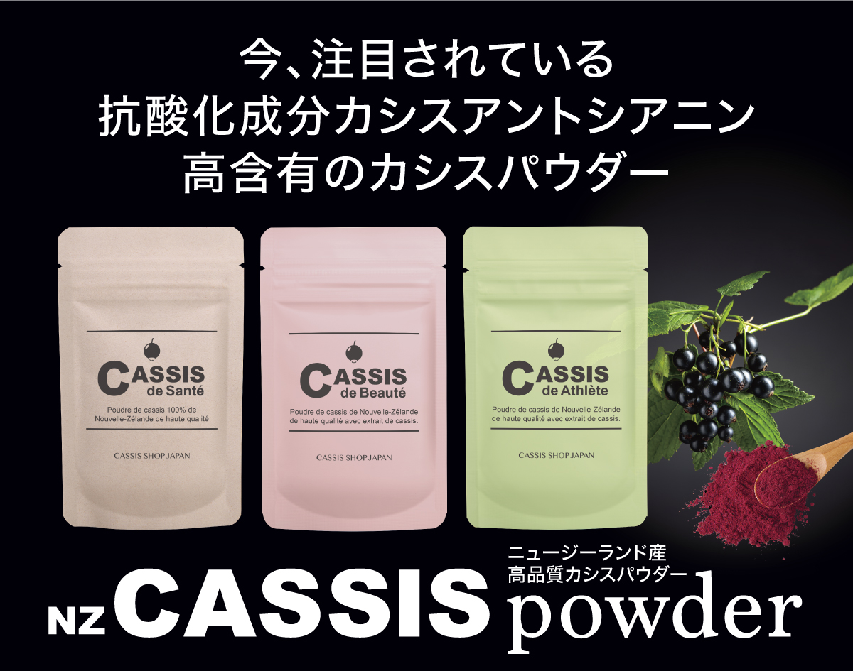 エイジングケアに有用な果実として最近注目されるベリー類の果実「カシス」。その有用成分カシスアントシアニン(抗酸化成分)の配合比率を変えて目的別に摂取できるNZカシスパウダーを新発売。