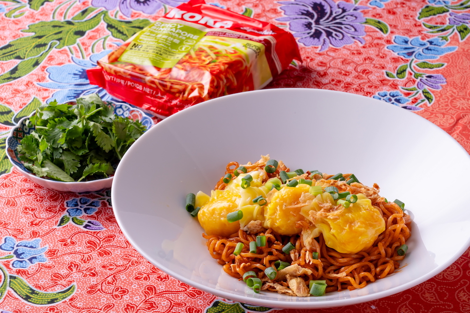 ▲雲呑(ワンタン)と揚げネギのシンガポールスパイシー焼きそば
