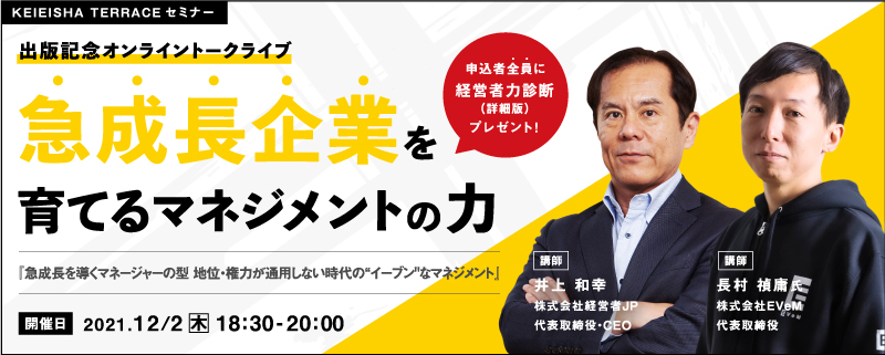 【KEIEISHA TERRACEセミナー】 出版記念オンライントークライブ 急成長企業を育てるマネジメントの力