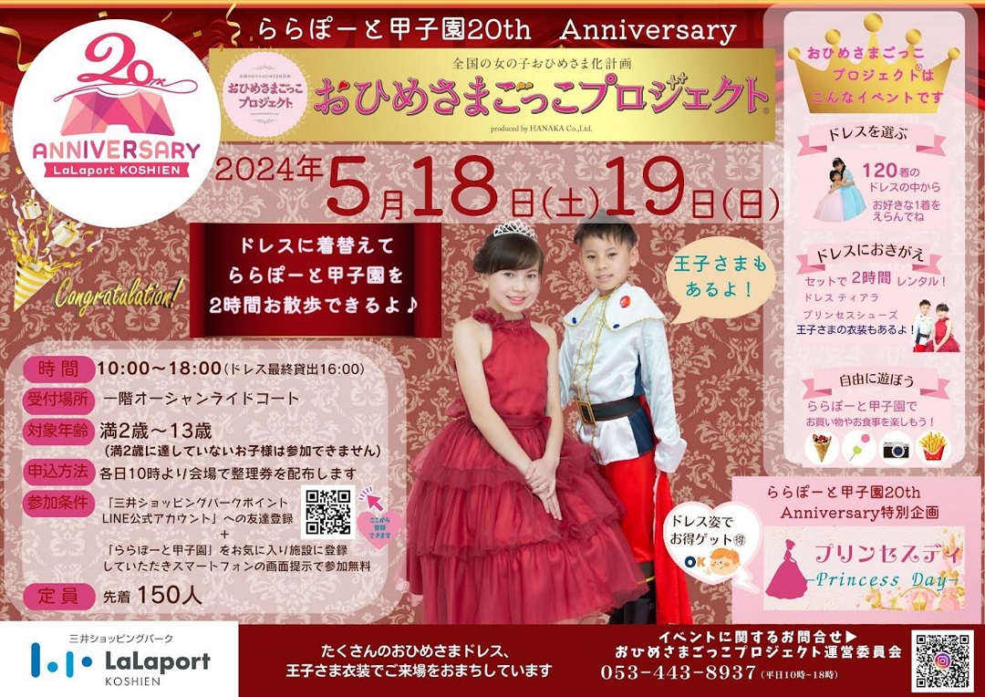 5/18(土)・19(日) ららぽーと甲子園 にて おひめさまごっこプロジェクト開催