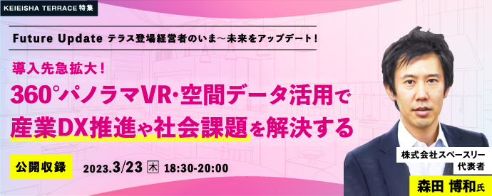 【KEIEISHA TERRACEセミナー】【公開収録】導入先急拡大! 360°パノラマVR・空間データ活用で産業DX推進や 社会課題を解決する<スペースリー 森田 博和氏>