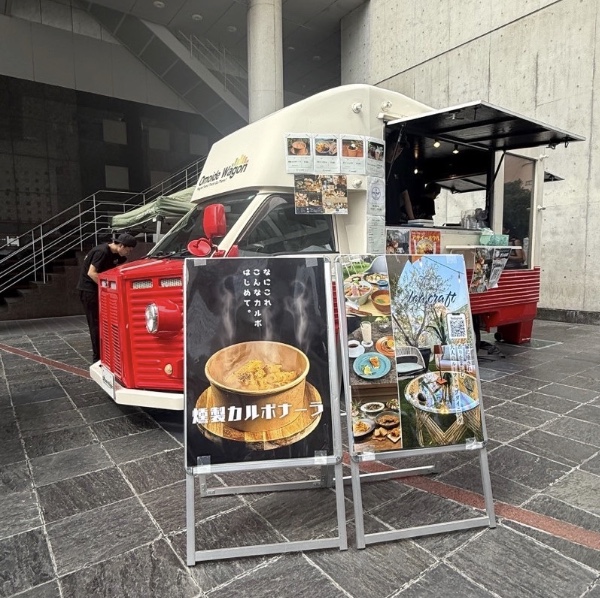 イベント当日の会場内は、ご夫婦や家族連れなど沢山の人たちでにぎわいを見せていました。燻製カルボナーラを購入されたお客様の中には、「美味しすぎてお代わりしに来た」方や「燻製の香りがめっちゃいい」とお話される方もいました。