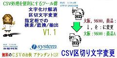 指定フォルダ/ファイルから指定区切り文字でCSV分解後、新たに指定した区切り文字変更して保存します。